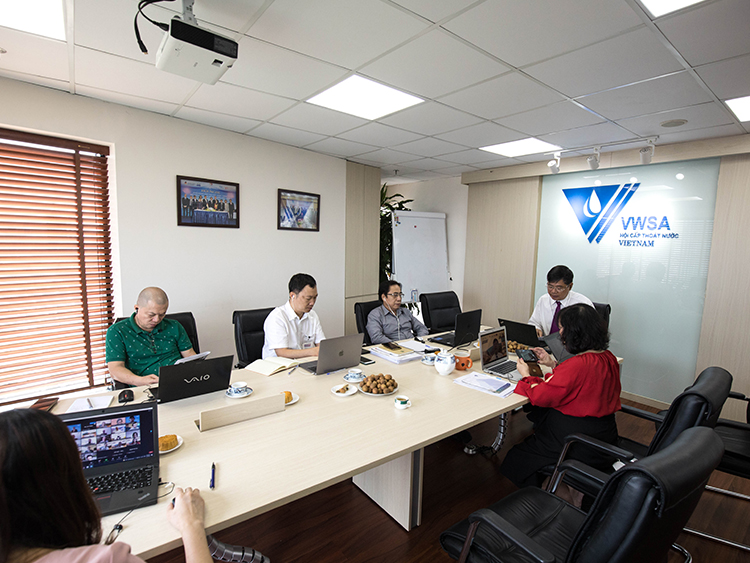 Đại diện Hội Cấp thoát nước Việt Nam dự họp từ trụ sở Hội