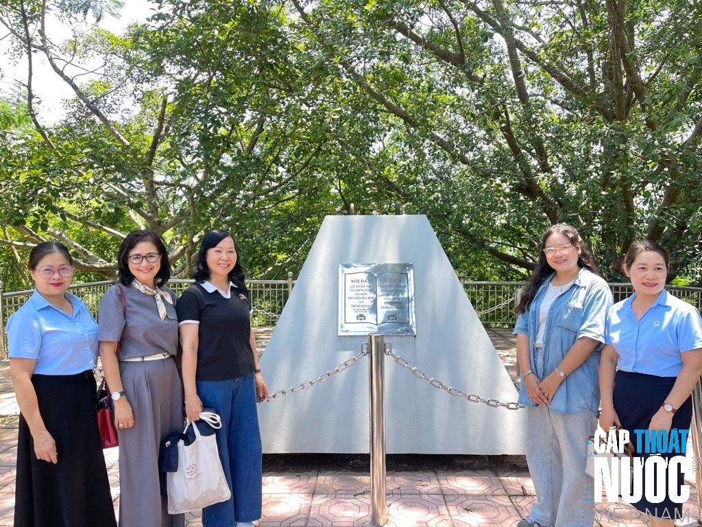 Đoàn công tác VWSA chụp ảnh lưu niệm tại nơi lưu giữ bức thư "gửi thế hệ mai sau"