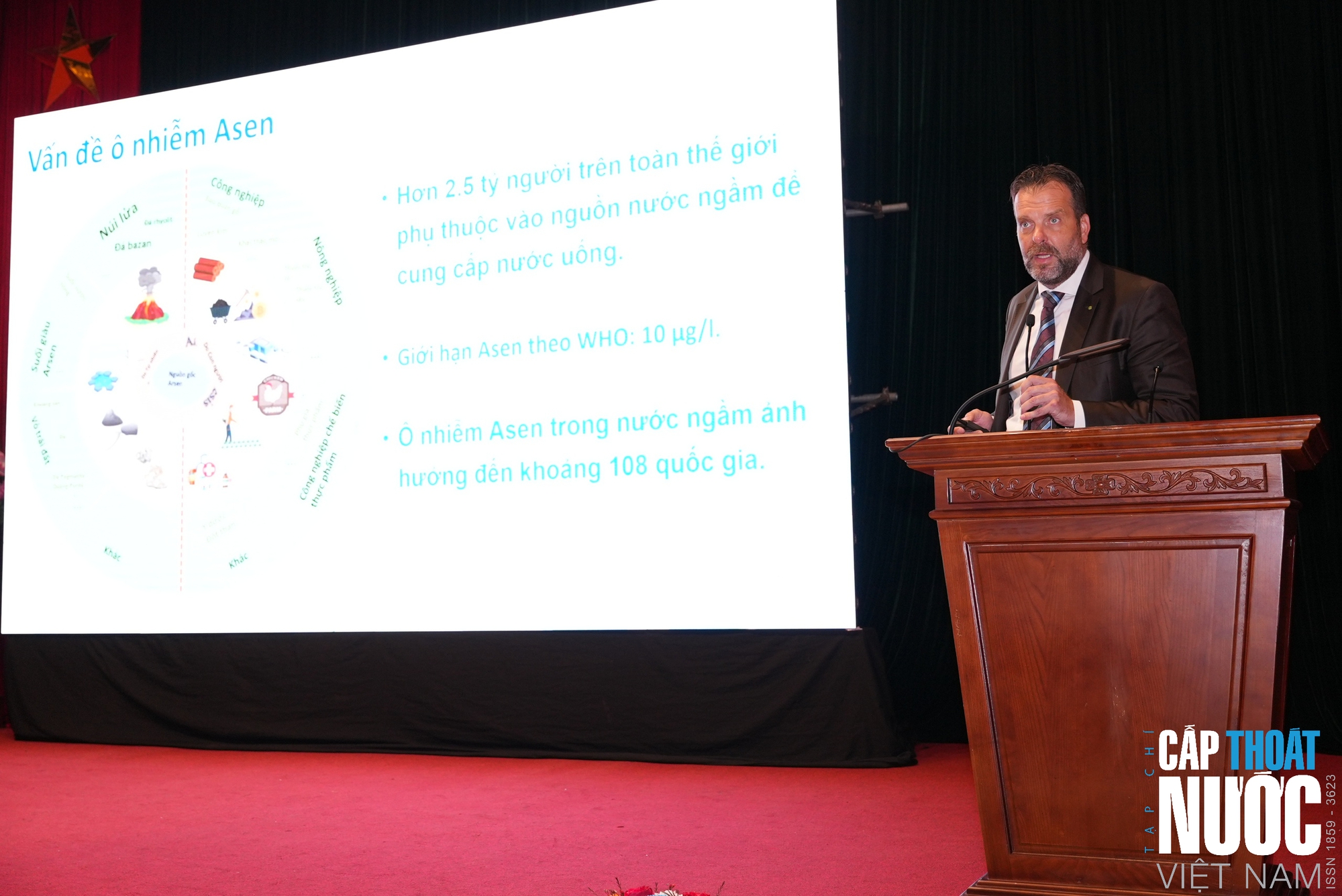 Dưới góc nhìn của một chuyên gia trong lĩnh vực nước sạch, bài trình bày của Tổng Thư ký Hiệp hội nước Hungary Balint Horvath tại hội thảo đã mang đến một cái nhìn toàn diện về thách thức ô nhiễm asen trong nước ngầm và những giải pháp công nghệ tiên tiến giải quyết vấn đề này. Asen có ảnh hưởng đến hơn 2,5 tỷ người trên toàn cầu, đặc biệt tại các quốc gia như Pakistan, Ấn Độ và cả Việt Nam. Với giới hạn cho phép của Tổ chức Y tế Thế giới là 10µg/l, nhiều khu vực đang phải đối mặt với nguy cơ sức khỏe nghiêm trọng như ung thư, bệnh tim và rối loạn da do sử dụng nguồn nước nhiễm asen.