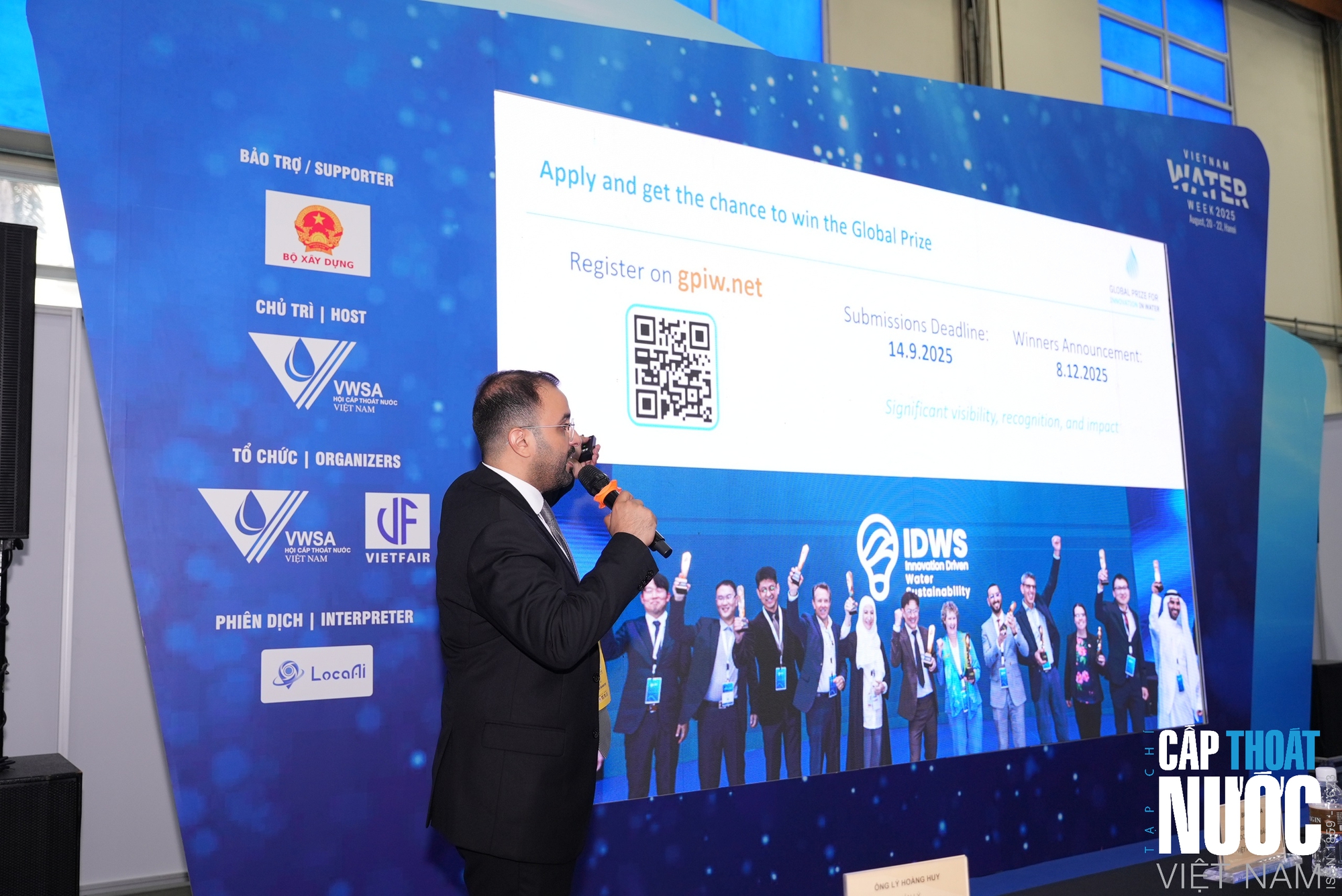 Phần cuối hội thảo là thông báo về giải thưởng toàn cầu cho các đồ án, giải pháp cấp nước, thoát nước, xử lý nước thải, môi trường do Tổ chức GPIW của Ả Rập Xê - Út tổ chức.