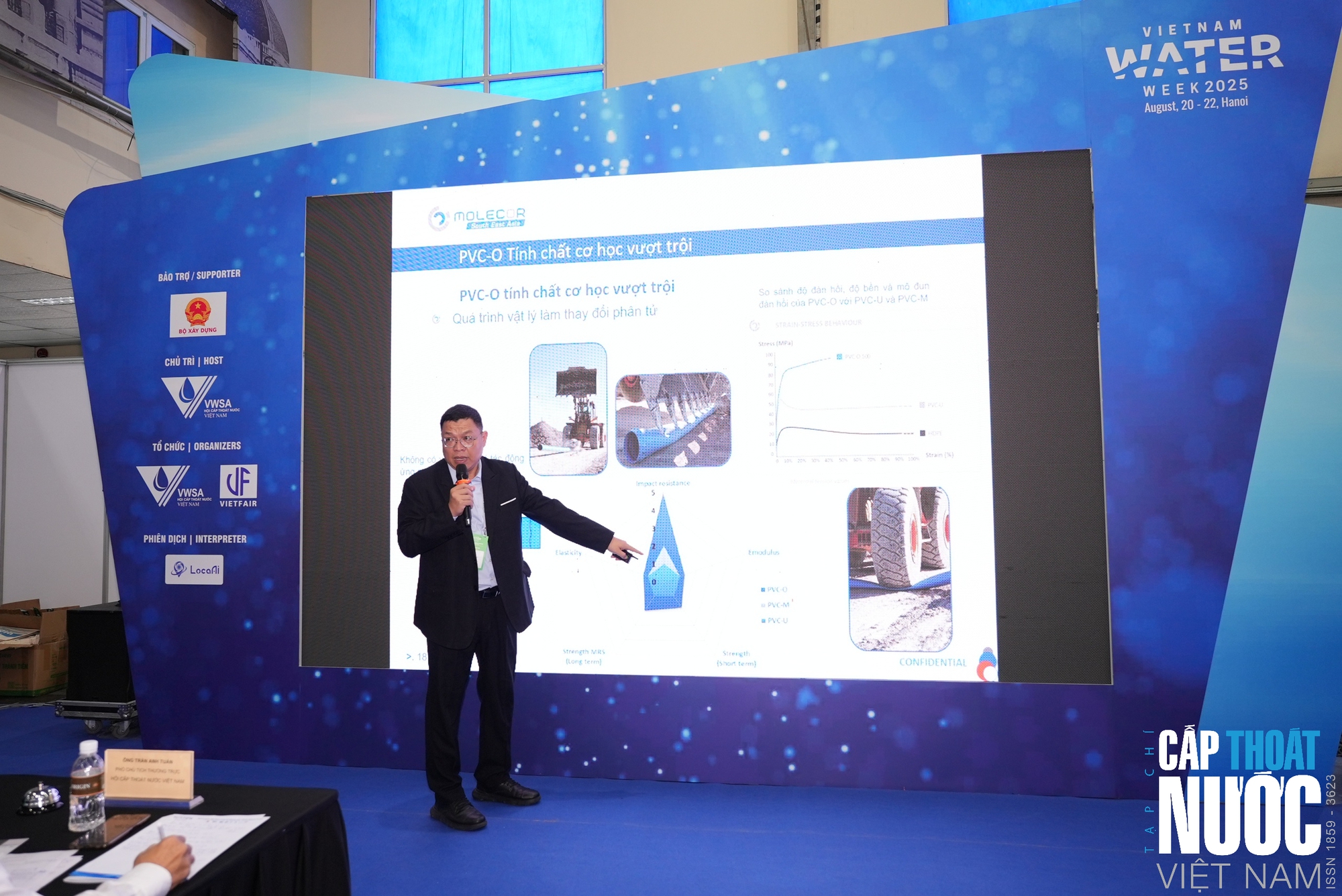 Molecor là nhà sản xuất ống nhựa đến từ Tây Ban Nha tham luận. bằng chính sản phẩm PVC-O sạch - chắc - bền bảo hành 50 năm, không sử dụng kéo, hóa chất để kết nối nhờ hệ thống roăng đặc biệt, giúp nhà thầu tiết giảm chi phí lớn trong thi công. Công nghệ PVC-O với sự gắn kết bền vững tạo ra thành ống mỏng hơn sản phẩm cùng loại nhưng độ bền, chịu lực cao hơn 5 lần sản phẩm cùng loại và giúp nước chảy trong ống tốt hơn, tiết kiệm năng lượng, thân thiện môi trường. Đại diện nhà sản xuất Molecor cho biết "Sử dụng ống nhựa PVC-O tiết kiệm hơn 32% so với sản phẩm truyền thống".