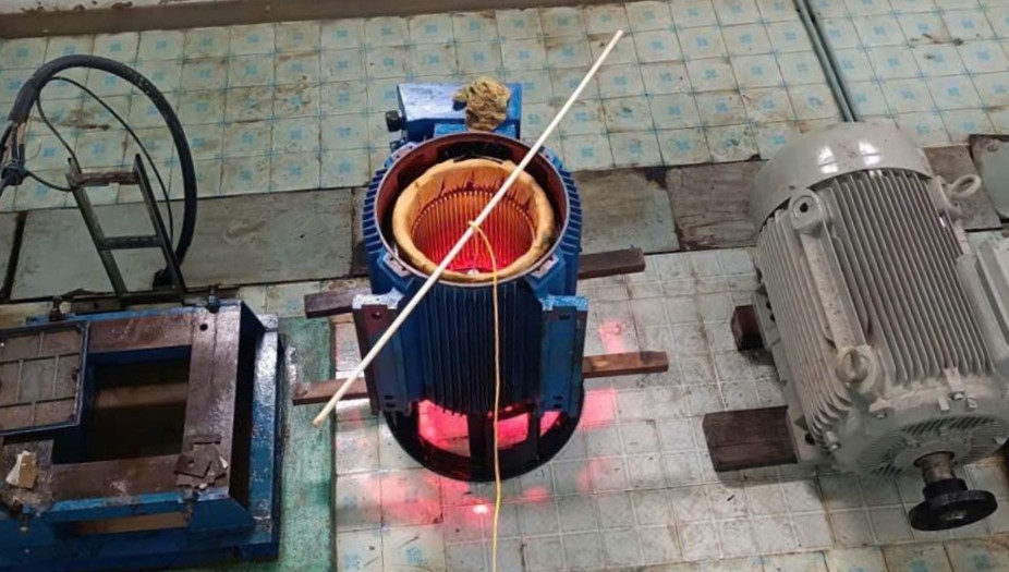 Công nhân tiến hành sấy khô động cơ bơm.