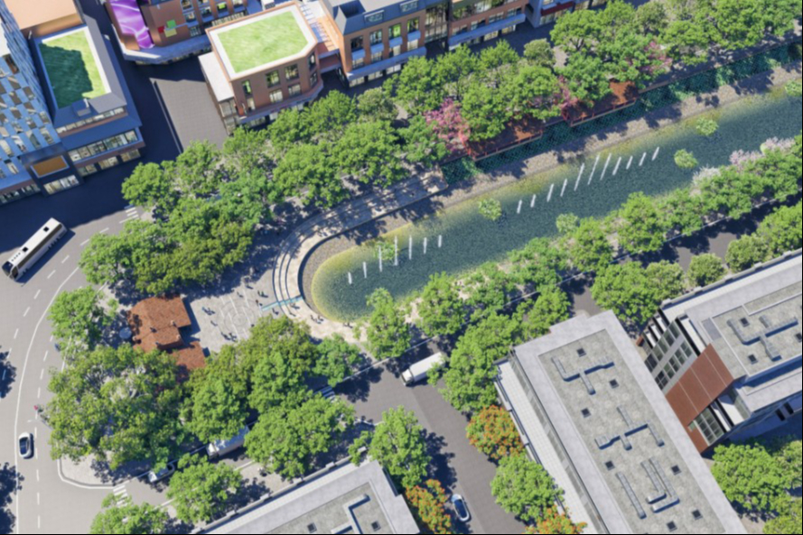 Phối cảnh công viên hai bên bờ sông Tô Lịch hướng tới kiến tạo không gian xanh cho Thủ đô. Ảnh: ĐVCC