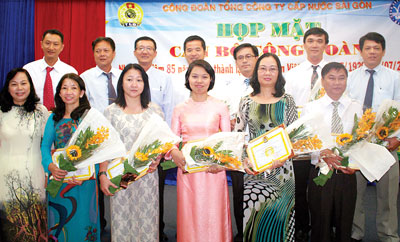 Ban Thường vụ Công đoàn Tổng Công ty Cấp nước Sài Gòn vừa xét chọn 13 cán bộ công đoàn đạt chuẩn để trao tặng Kỷ niệm chương “Vì sự nghiệp xây dựng tổ chức công đoàn” năm 2014. Đồng thời, Ban Thường vụ Công đoàn Tổng Công ty cũng đã tuyên dương 47 đồng chí với danh hiệu “Người cán bộ công đoàn của chúng tôi” cấp trên cơ sở năm 2014.